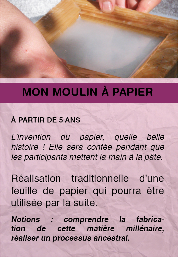 L’invention du papier, quelle belle histoire ! Elle sera contée pendant que les participants mettent la main à la pâte.
