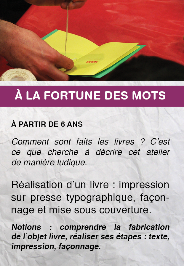 Comment sont faits les livres ? C’est ce que cherche à décrire cet atelier de manière ludique.